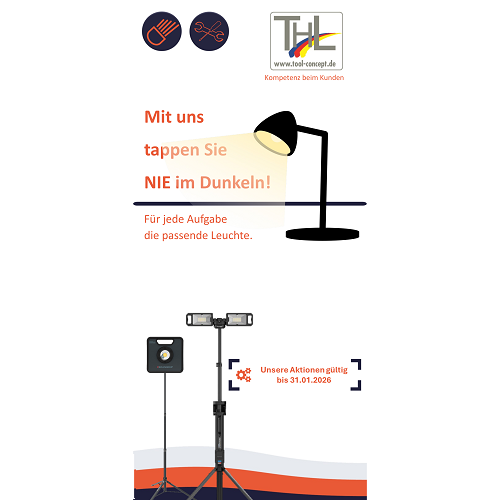 Von Flutlichtsrahlern bis Kopflampen. Wir haben für jede Aufabe die passende Leuchte.