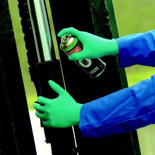 Norm: EN 374 · Kat. III · AQL: 1,5 · Material: Nitril · glatt · puderfrei · mit Rollrand · hohe Durchstichfestigkeit · frei von Latexproteinen · sicherer Nass- und Trockengriff · leichtes An- und Ausziehen · für Spezialanwendungen geeignet · silikonfrei · antistatisch gem. EN 1149-1, 1149-3 und 1149-5 · Länge ca.: 240mm · Box à 100 Stück