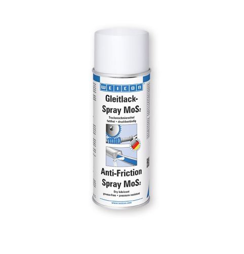 WEICON Gleitlack-Spray MoS2 ist ein fettfreies Trockenschmiermittel mit hoher Druck- und Temperaturbeständigkeit von -185°C (-301°F) bis +400°C (+752°F).