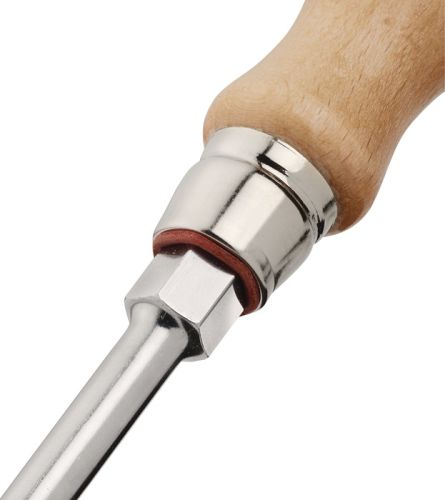 mit Holzheft · Klinge aus hochvergütetem Spezialstahl · glanzverchromt · durchgehende Klinge und 6kant-Ansatz für Schraubenschlüssel · mit Lederkappe · Spitze brüniertfür Schlitzschrauben