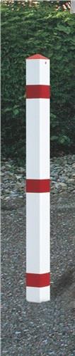 Sperrpfosten STA rot-weiß m.Bodenhülse m.Spitzkappe