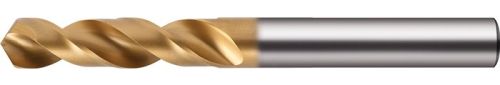 HSS-Co · TiN-beschichtet · DIN 1897 · Typ UNI · zum universellen Einsatz · Spitzenwinkel 118 ° · mit Zylinderschaft · rechtsschneidend · gutes Eigenzentrierverhalten · ausgespitzte Querschneide · für NE-Metalle, Bau- und Kohlenstoffstähle, hochlegierte Stähle (z.B. V2A/V4A), Werkzeugstähle, Guss und Gusslegierungen, Magnesiumlegierungen, Kunststoffe sowie Aluminium · Vorteile:Sonderanschliff und spezielle Ausspitzung für geringes Drehmoment und ruhigen Lauf · rundes Nutenprofil für optimale Spanabfuhr, selbst lange Späne von zähen Werkstoffen ·