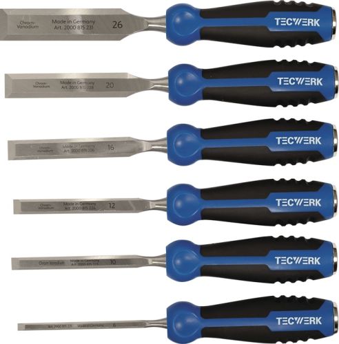Stechbeitelsatz 6,10,12,16,20,26mm 2-K Heft.6tlg.Holzkasten