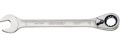 umschaltbarfür Schnellanzug oder ratschendes Lösen · aus CV-Stahl · matt verchromt · Ringseite um 13° abgewinkelt · umschaltbar für Rechts-und Linksgang · hohe Drehmomentübertragung · besonders gute Griffigkeit durch tailliertes Profil im Schaft · Arbeitswinkel 7° von 8 bis 15 mm, 6° von 16 bis 24 mm