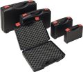 aus Polypropylen · mit Schaumstoffeinlagen · Farbe schwarz · mit stabilen Verschlüssen (rot) und Scharnieren · mit 2 PU-Schaumstoffeinlagen, je eine genoppte und eine glatte Seite, in Ober- und Unterschale ·