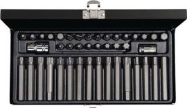 10 mm (3/8")- und 12,5 mm (1/2")-Vierkantantrieb für Schrauben mit Innensechskant-, XZN- und Innen-TORX®-Profil · aus S2-Stahl (Adapter aus Chrom-Vandium-Stahl)für Handbetätigung, Elektroschrauber und SchlagschrauberInhalt:je 1