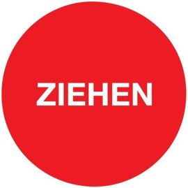 ZiehenFolienaufkleber · rot mit weißer Schrift · Weitere technische Eigenschaften Material: Folie selbstklebend